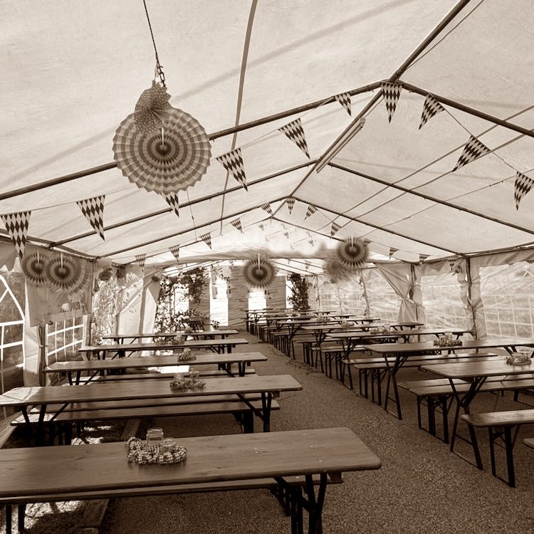 Partyzelt mit Komplettausstattung für bis zu 80 Personen